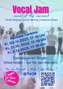 Bei den monatlich stattfinden Vocal Jam (-Session)s treffen sich Menschen mit unterschiedlichsten Backgrounds, um miteinander zu singen.