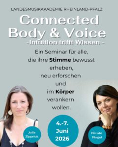 Ein Seminar, das dazu einlädt, die eigene Stimme bewusst zu erheben und neu zu erforschen. Dabei verbinden wir gesangstechnische Ansätze mit aktuellen wissenschaftlichen Erkenntnissen und schaffen Raum für persönliches Erleben und Entwicklung.